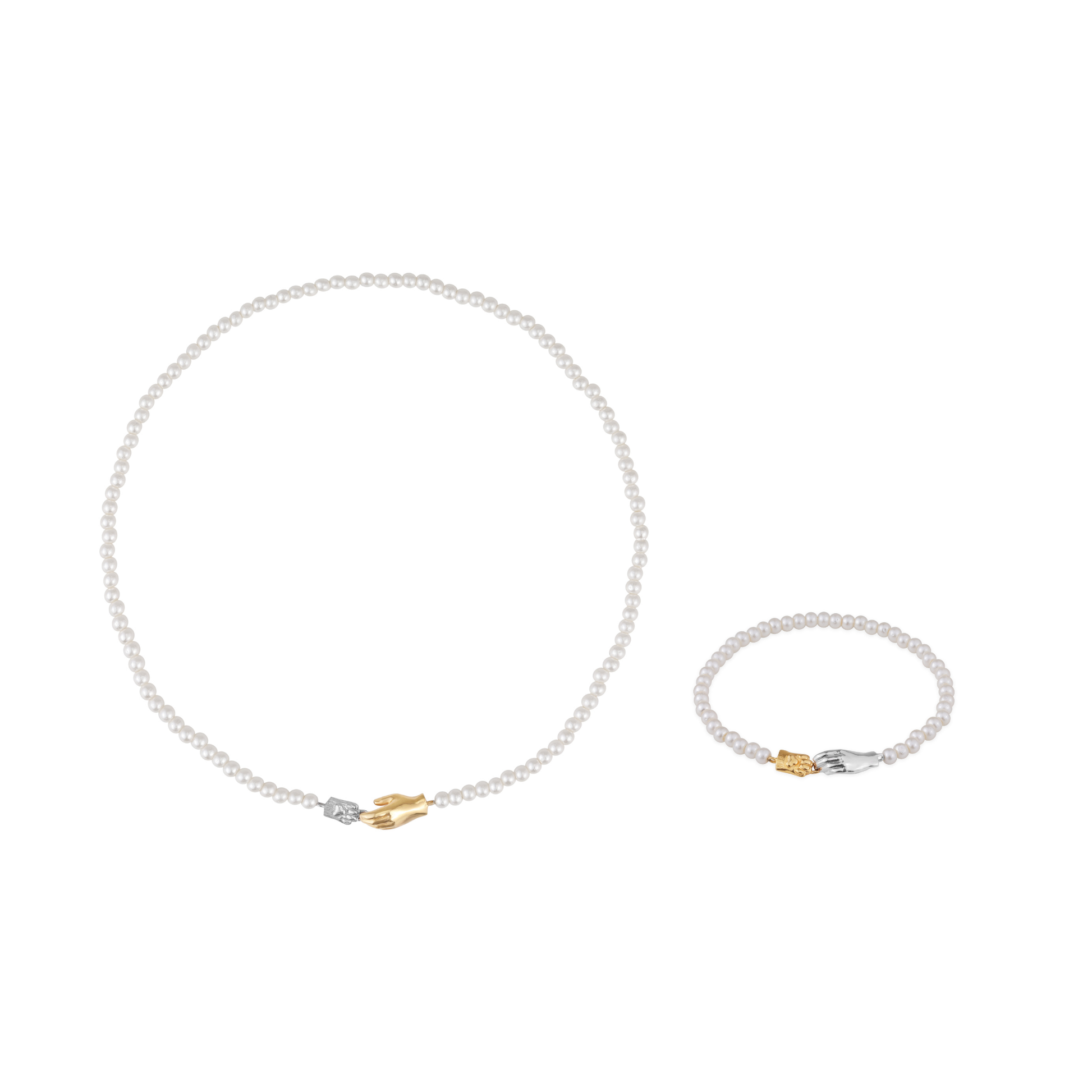 Набір прикрас «Лапка та Ручка» на перлах від LUCHI — це витончений ювелірний комплект, що поєднує натуральні перли, срібло 925 проби та символіку безумовної любові до тварин. До набору входять браслет і кольє, виконані в єдиному стилі з позолотою 24К.