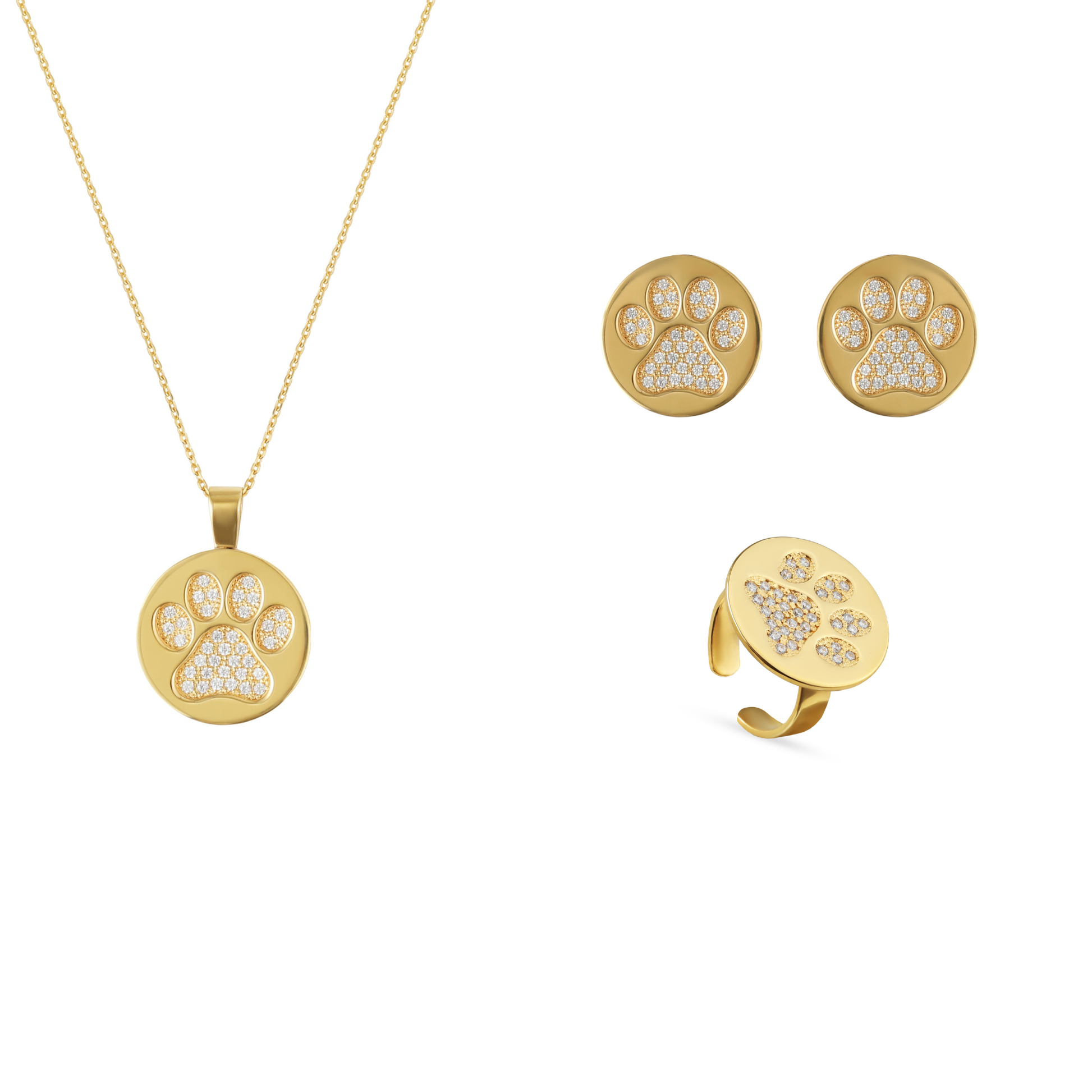 Набір прикрас «Щаслива Лапка» — це символ любові до тварин, відданості та особливого зв’язку між людиною і її улюбленцем. Ювелірний комплект поєднує кольє, сережки та каблучку, виготовлені зі срібла 925 проби та покриті позолотою 24К.