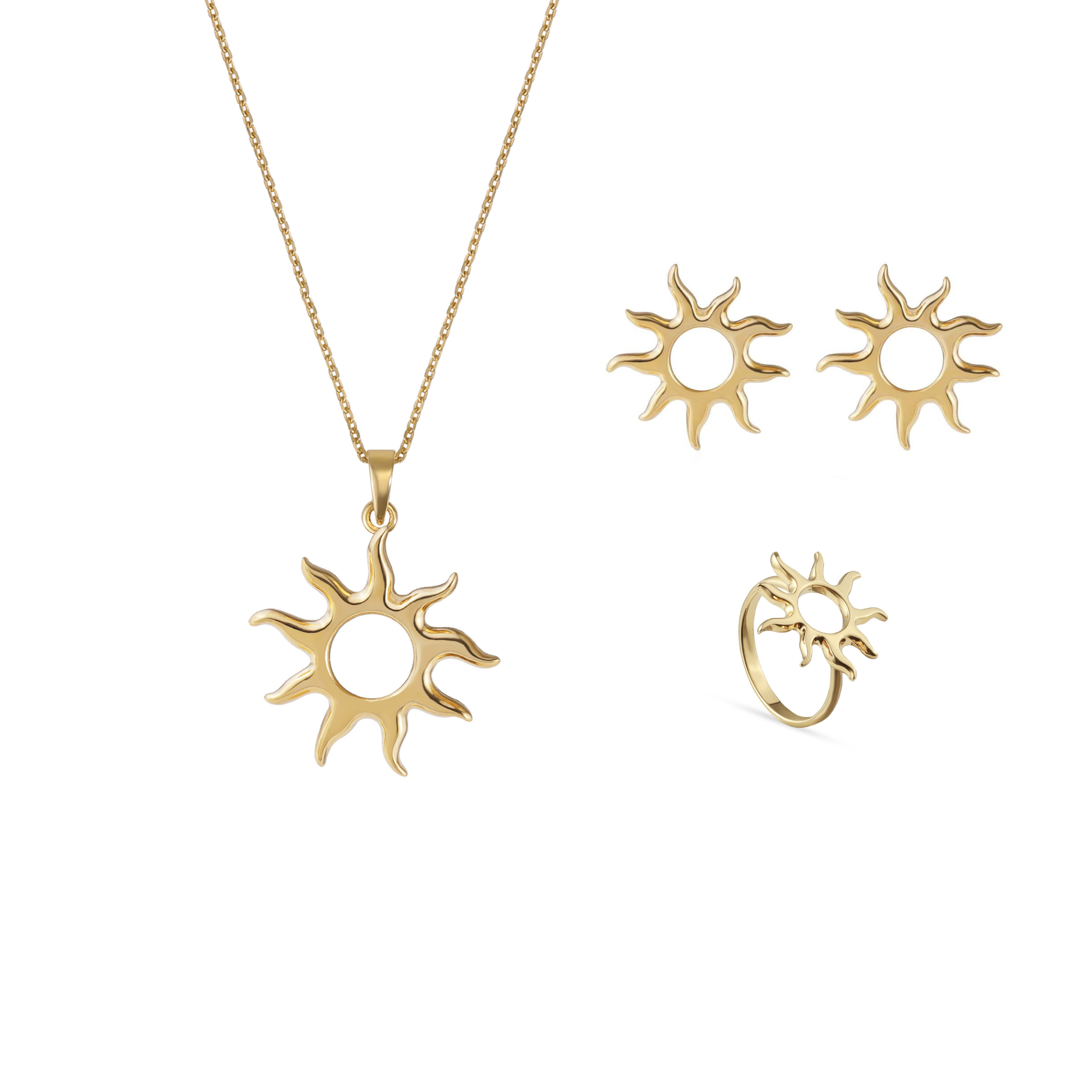 Набір прикрас «Сонце» з колекції ДеньНіч від LUCHI — це гармонійний ювелірний комплект, що символізує тепло, світло та внутрішню енергію. До набору входять срібна каблучка з позолотою 24К, позолочене срібне кольє та сережки Сонце, виконані в єдиному стилі.